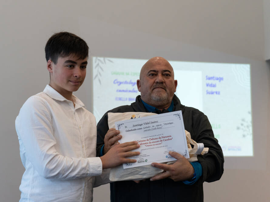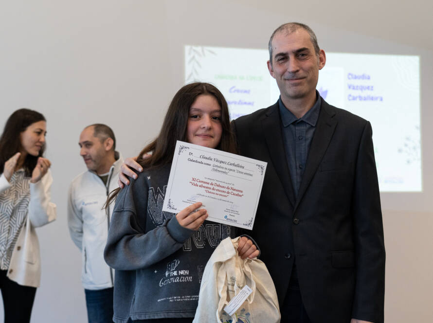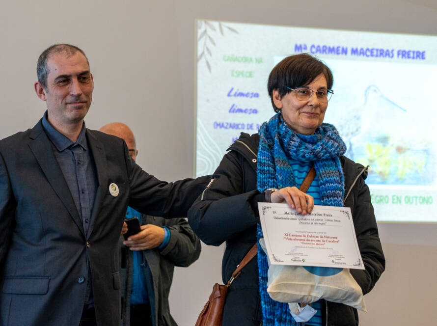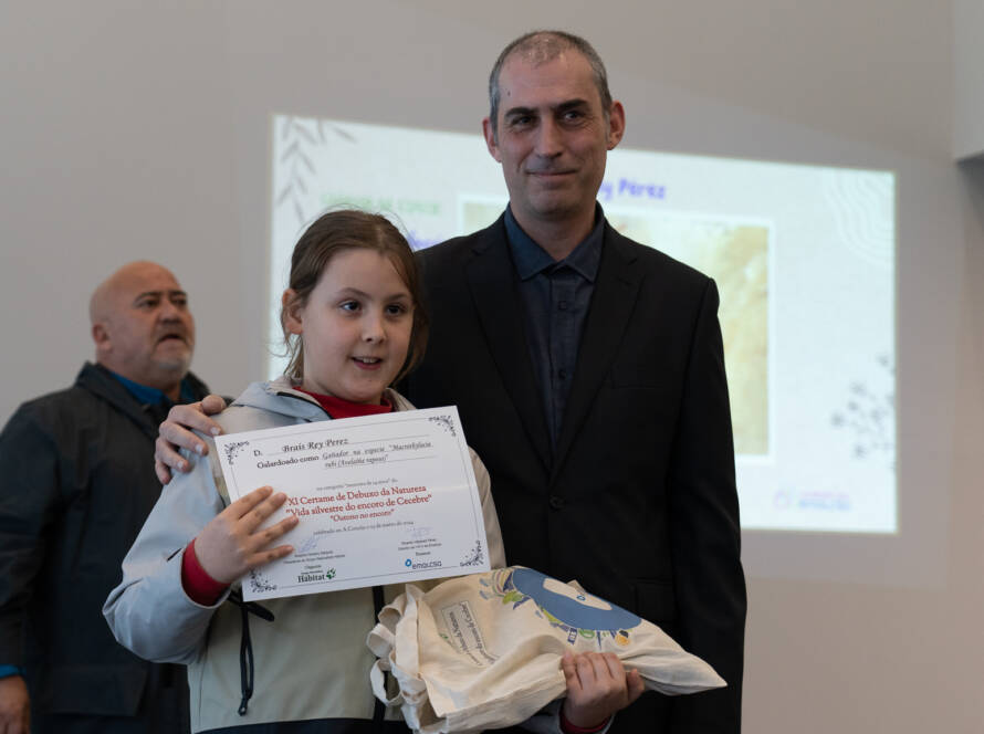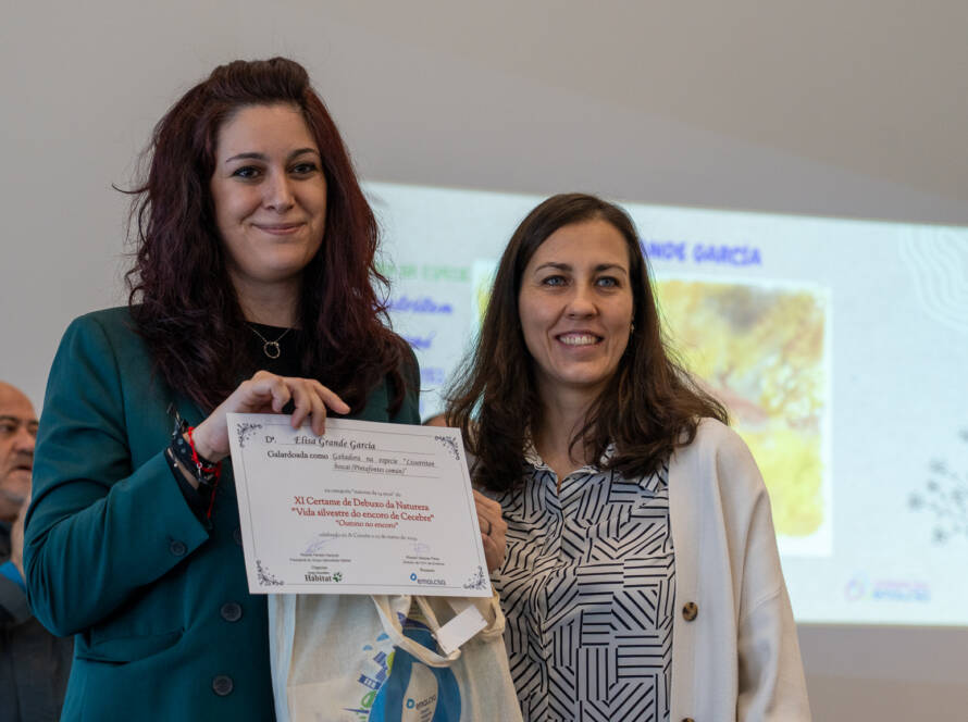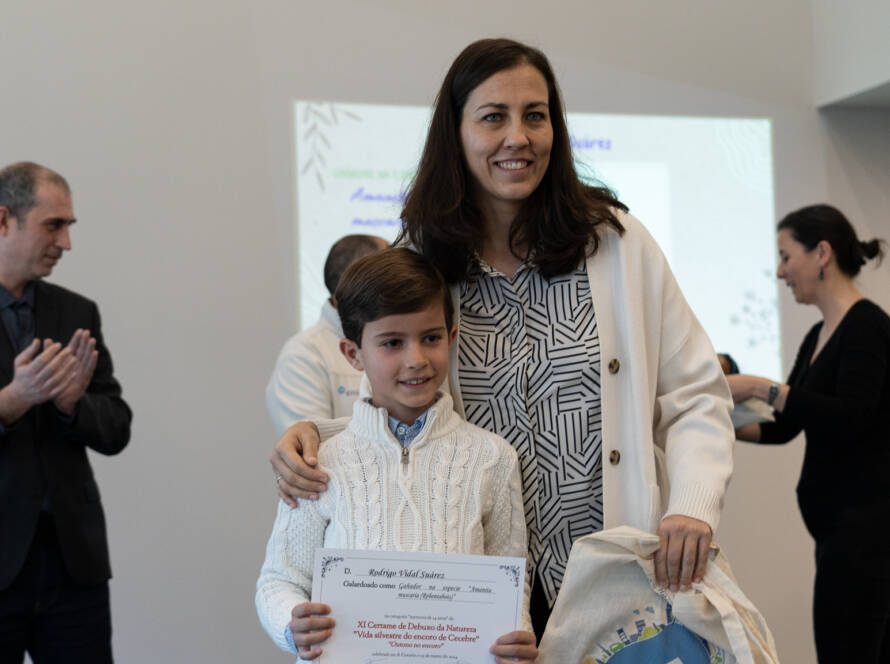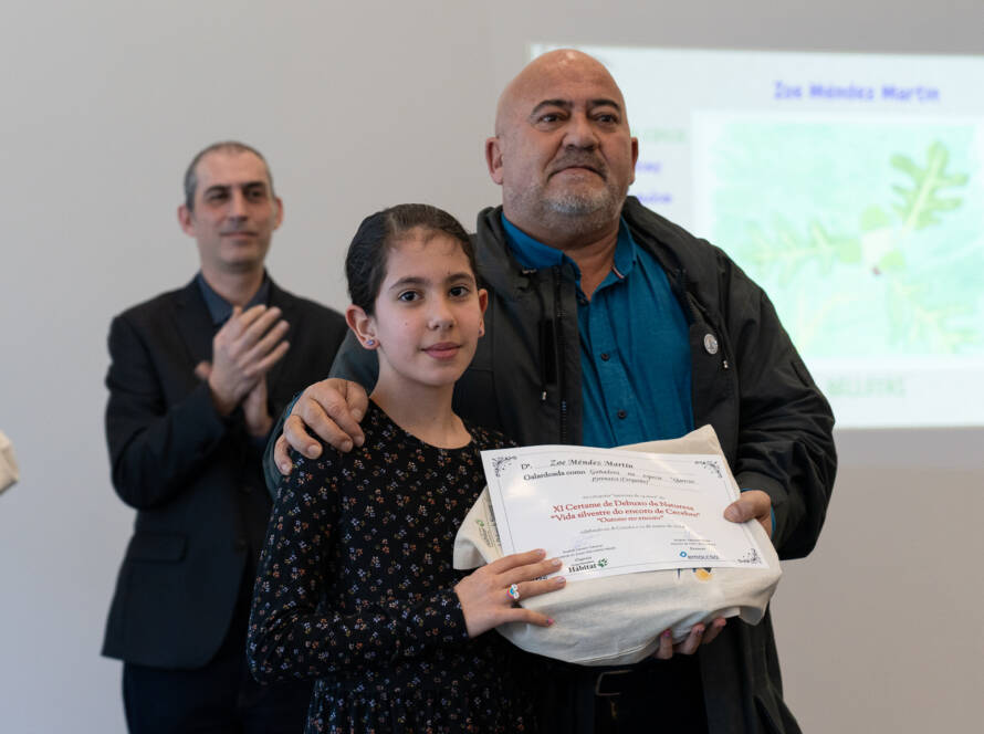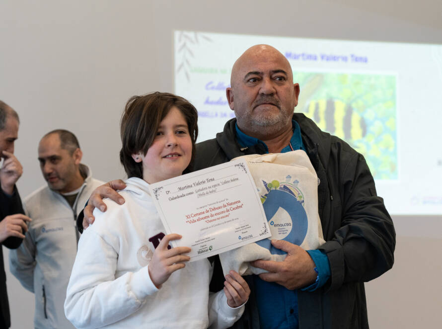Fue numeroso el público que se acercó a la Casa del Agua para asistir a la entrega de premios. En la categoría de mayores de 14 anos resultó ganadora Ángela Fraga García con una ilustración del Limax maximus (Babosa leopardo). Ángela recibió el diploma que la acredita como ganadora en esta categoría de manos de Noemí Díaz Vázquez, concejala de Medio Ambiente del Ayuntamiento de A Coruña. El segundo puesto fue para Ainara Naveira Carballo con un dibujo de la Colletes hederae (Abeja de la Hiedra). Ricardo Ferreiro, presidente del Grupo Naturalista Hábitat, le entregó su diploma. Por último, Lucía Martelo García, con una ilustración de la Amanita muscaria (Matamoscas), fue tercera y recibió su galardón de manos de Ricardo Vázquez, director de I+D+i de Emalcsa. Además de sus diplomas, los tres primeros clasificados recibieron 150, 100 e 50 euros, respectivamente, y diferentes regalos. En la entrega de galardones también estuvo presente José Antonio Santiso, presidente de la Reserva da Biosfera Mariñas Coruñesas e Terras do Mandeo.