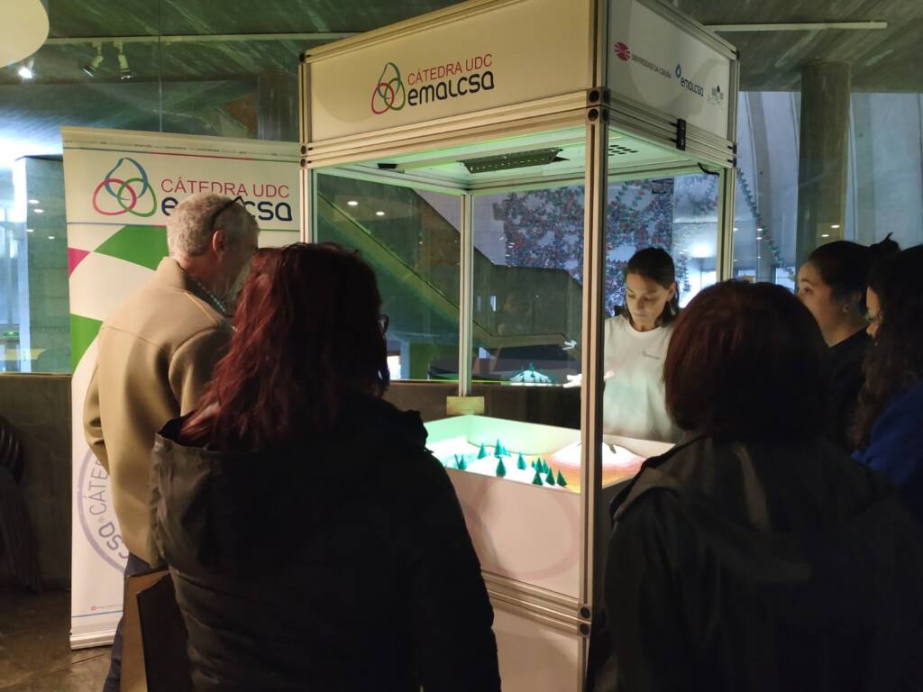 5. CHOIVA-BOX, simulador de cuencas hidrográficas con fines docentes. Se trata de un sistema en el que a través de una proyección podemos establecer la topografía de un determinado territorio, simulado en este caso mediante una caja llena de arena. Esta arena es manipulable y cambia la configuración de la superficie para poder ver cómo el agua circula en función de esa modificación. El sistema fue desarrollado en el año 2019 como un módulo didáctico en el marco de la participación de EMALCSA en ferias de ciencia juvenil y actualmente está asociado al programa COAWA, la comunidad del Agua, una iniciativa de la Cátedra para divulgar conocimiento sobre las relaciones del agua con el medio ambiente y las personas en un contexto integrado vinculado al marco conceptual DUSA (Desarrollo Urbano Sensible al Agua).