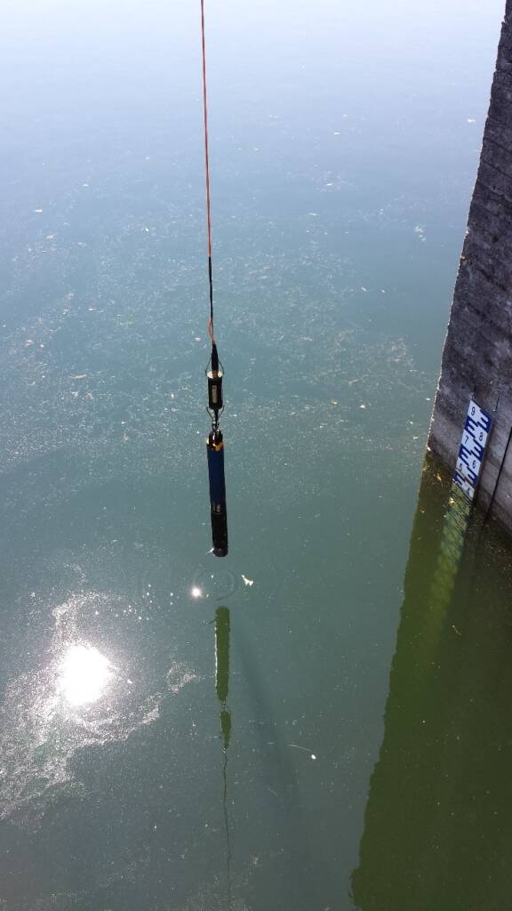 de perfiles de calidad del agua con una sonda multiparamétrica instalada en su extremo