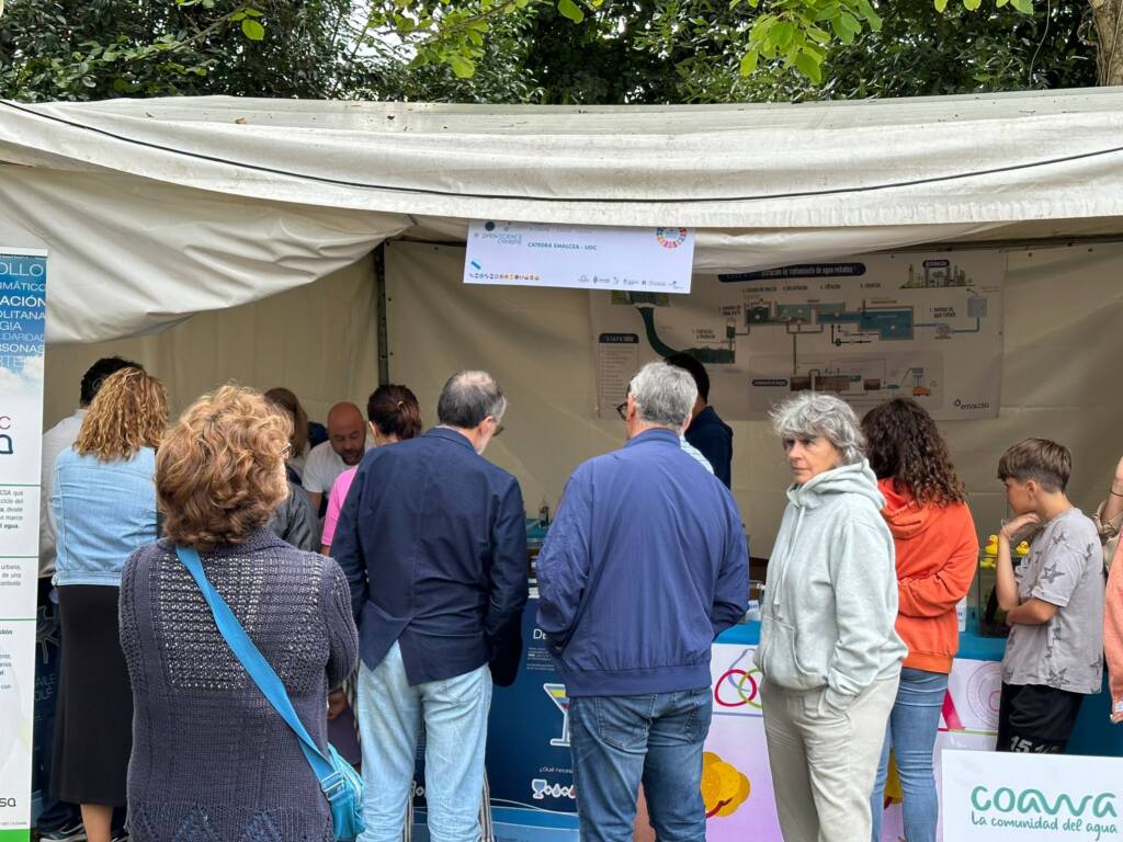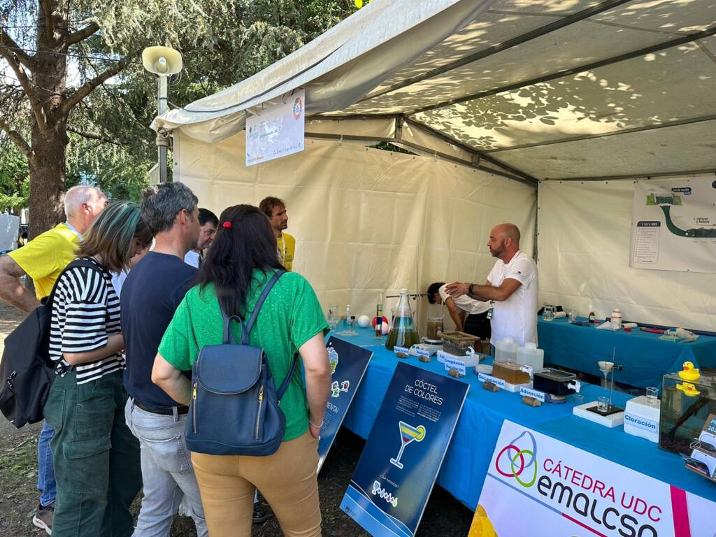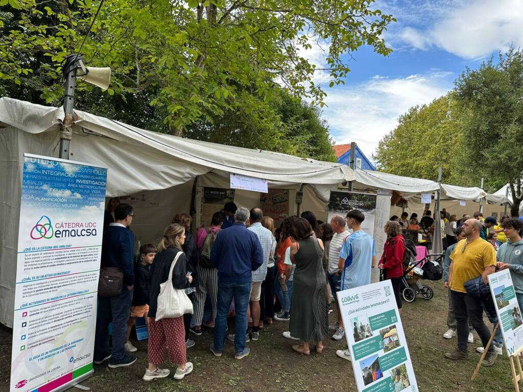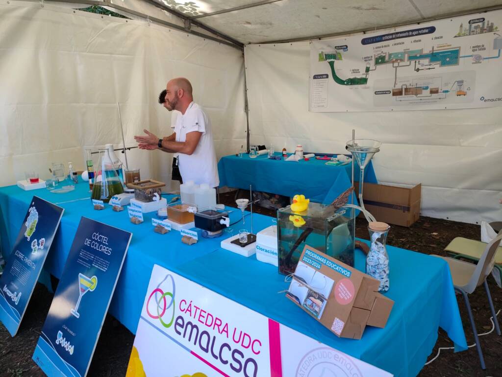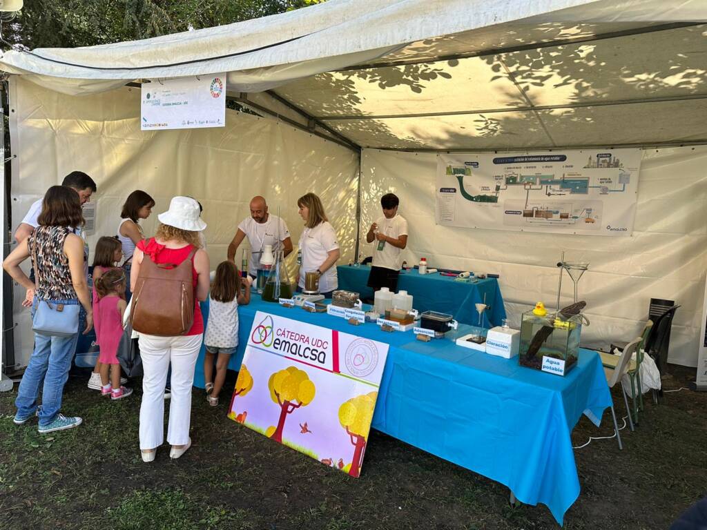 La Cátedra Emalcsa-UDC fue uno de los colaboradores de la feria y estuvo presente en el Parque da Igrexa con un stand propio por el que pasaron numerosos visitantes. Los que lo hicieron pudieron conocer, a través de una simulación a pequeña escala, alguno de los pasos que se desarrollan en la Estación de Tratamiento de Agua Potable de A Telva (Cambre) con el objetivo de potabilizar el agua que se recoge del río Mero para que llegue a nuestros domicilios en óptimas condiciones para ser consumida.