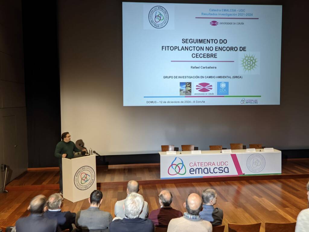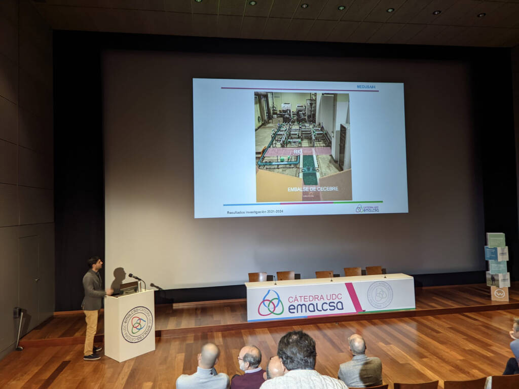 La Cátedra Emalcsa-UDC presentó el 12 de diciembre en la Sala Leonardo da Vinci de la Domus los resultados de las investigaciones realizadas entre 2021 y 2024. En una jornada que se extendió durante toda la mañana y que levantó una gran expectación con más de 70 asistentes directos y 60 a través del canal de YouTube de Emalcsa, diferentes investigadores de la Universidade da Coruña que colaboran con la Cátedra desgranaron los resultados obtenidos en los proyectos desarrollados en las principales líneas de investigación de esta: Plan AdO (Agua desde el Origen), Plan Ecad (Excelencia en el Agua Distribuida) y Aqualab (Mejora Digital del Sistema de Agua Urbana). Todos los proyectos presentados, como subrayaron muchos de los ponentes, tienen un mismo objetivo: beneficiar a los ciudadanos de A Coruña y de su área metropolitana mejorando la gestión y la calidad del agua que consumimos en la ciudad herculina y su área metropolitana, así como contribuir al conocimiento general en la gestión del agua. El vídeo de la jornada, que se retransmitió en streaming, se puede ver aquí.